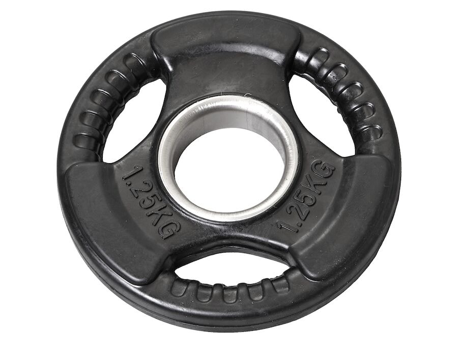 Gúmmíhúðuð lóðaplata með 50 mm gatþvermál sem passar í Ólympískar lóðastangir. Gúmmíhúð lóðaplötunnar er mildari við gólfið en hentar ekki til að detta. Innri stálhringur kemur í veg fyrir slit á plötunni við notkun.
