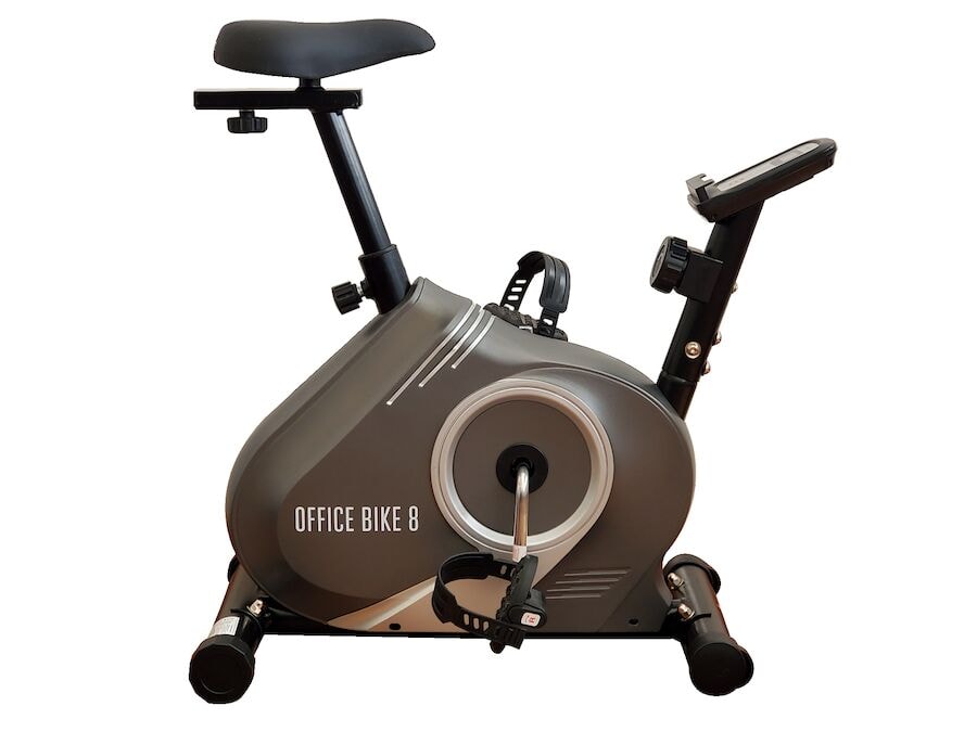 Titan Life Office 8 er hið fullkomna æfingahjól fyrir skrifstofuna. Með skrifstofuhjóli geturðu auðveldlega viðhaldið heilbrigðum lífsstíl með því að sameina þjálfun við daglegt starf. Notkun æfingahjólsins eykur orkustig þitt og framleiðni, en eykur blóðrásina og kaloríubrennslu. Hjólið er með skjá sem sýnir tíma, hraða, vegalengd og kaloríur. Með innbyggðu Bluetooth er hægt að vista þjálfunargögnin þín auðveldlega í líkamsræktarappinu, þar sem þú hefur einnig möguleika á að búa til persónuleg þjálfunarforrit. Hjólið er með 8 mótstöðuþrep og þægilegan sæti sem hægt er að stilla. Að auki finnur þú festingu fyrir iPad, flutningshjól og stillanlegar pedalólar.
