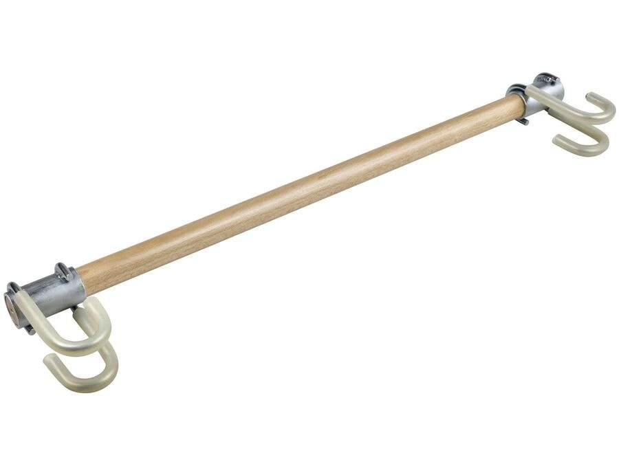 Trapisslá úr tré, með festingum á endunum fyrir auðvelda, fljótlega og örugga festingu á núverandi fimleikahringi. Trapissláin er afhent án reipa, óla og fimleikahringja.