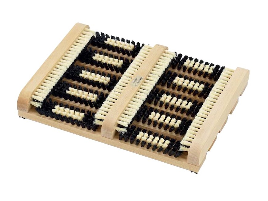 Skóbursti til að þrífa skó áður en farið er inn. Stífir burstar fjarlægja á áhrifaríkan hátt óhreinindi og skít af skóm og koma í veg fyrir að þeir komist inn. Þessi skóbursti er úr lökkuðu beykiviði með botni sem er hálkuvörn. Settur lauslega á yfirborðið og þolir vel útiveru. Með burstyfirborðum bæði á hliðunum og neðst er auðvelt að bursta öll óhreinu svæðin á skónum. Afhentur fullsamsettur.