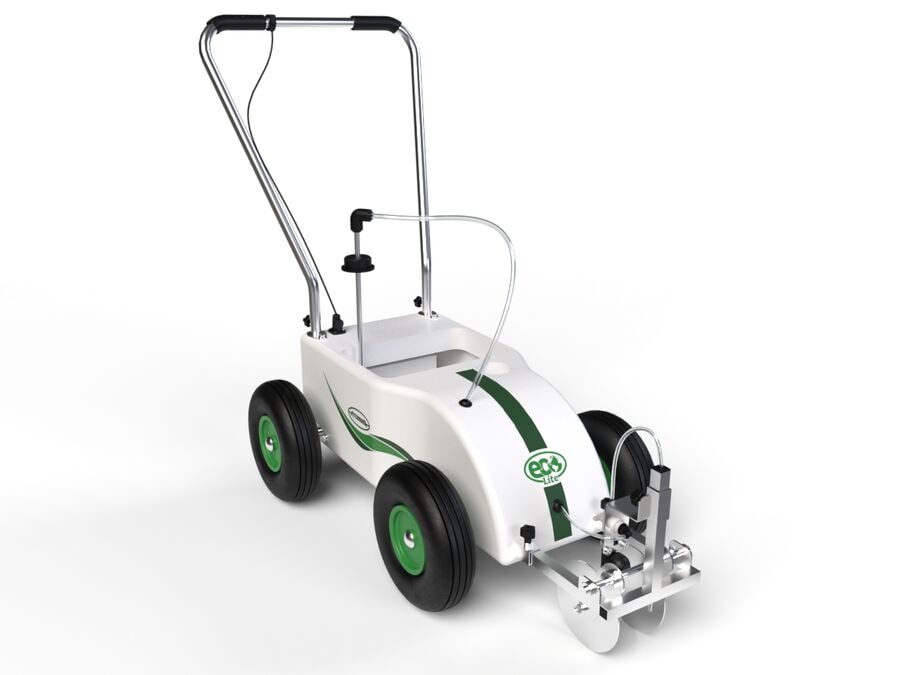 ECO Lite v2 línumerkingarvélin er skilvirk og notendavæn línumerkingarvél, fullkomin til að merkja knattspyrnuvelli og aðra íþróttavelli utandyra. Létt smíði gerir hana auðvelda í meðförum, en nákvæmur úðabúnaður tryggir skarpar línur. Vélin er samhæf mismunandi gerðum af málningu og hægt er að stilla hana að mismunandi línubreiddum. ECO Lite v2 býður upp á áreiðanlega lausn fyrir allar línumerkingarþarfir og er tilvalin fyrir bæði atvinnumenn og áhugamenn. • Hægt að nota fyrir bæði náttúrulegt gras og gervigras • Sterkur og traustur plastgrind • Rafhlaða: 12V 9Ah • Hleðsla: 1 hleðsla = línumerking að lágmarki. 10 knattspyrnuvellir • Stillanleg framhluti og stýri • Stillanleg línubreidd frá 50 mm upp í 120 mm • 4 stór loftdekk • Háþrýstidæla ásamt tveggja þrepa síun tryggir stöðuga gæði línu og færri stíflur. Línumerkingarvélin inniheldur: • 12 lítra málningartank (tóman) • 5 lítra vatnstank (tóman) • 1 lítra EcoClean hreinsivökva • Hleðslutæki fyrir rafhlöður • ECO Lite