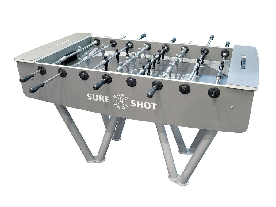 Upplifðu ógleymanlega fótboltaskemmtun utandyra með þessu sterka og veðurþolna borðfótboltaborði! Fullkomið fyrir almenningsgarða utandyra, skóla, tjaldstæði og þess háttar. Ramminn og fæturnir eru úr galvaniseruðu og duftlakkaðu stáli, sem tryggir langan endingartíma í öllum veðurskilyrðum. Borðið er tilbúið fyrir varanlega uppsetningu á sléttu yfirborði. Samfelldar stangir og traustur grunnur tryggja fulla stöðugleika í krefjandi leikjum. Þetta útiborðfótboltaborð er skreytt með glæsilegu og tímalausu útliti sem passar fullkomlega inn í hvaða utandyra umhverfi sem er. Fæst sem staðalbúnaður í gráu.
