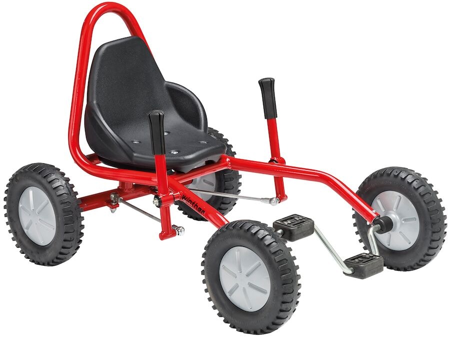 Ökutæki frá Winther með mjög góða aksturseiginleika og þar sem stýrið er með dráttarstöngum sem stjórna afturhjólunum. Skorar á hreyfifærni barnanna á skemmtilegan hátt.