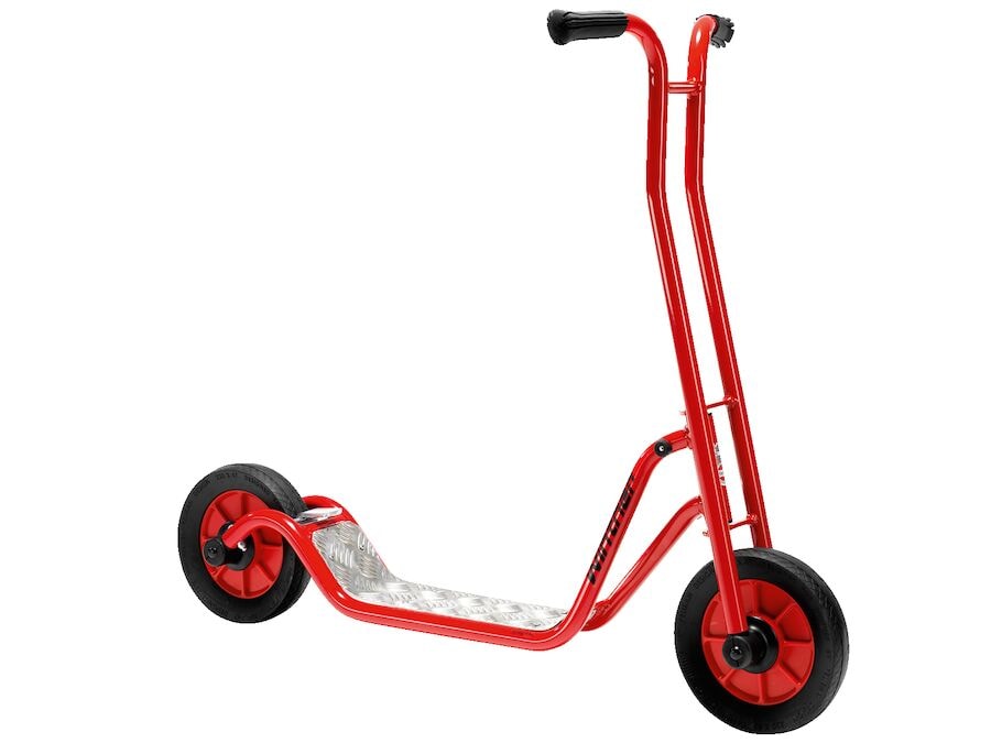 Öflug vespa með fullum hraða yfir völlinn. Botnplata úr stáli með hálkuvörn og sterk gúmmíhjól með bremsu að aftan. Vinsæl vespa sem stendur aldrei kyrr. Gefur sjálfstraust og betra jafnvægi. Það er engin furða að hjól vespunnar standa aldrei kyrr þegar börn eru á leikvellinum. Búið með bremsu á afturhjólinu.