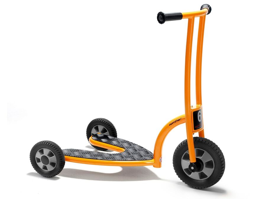 Safety Roller er stöðugt og skemmtilegt farartæki fyrir börn frá 3 til 7 ára. Þrjú hjól veita öryggi og jafnvægi, þannig að börnin geti hjólað örugglega og frjálslega kannað leikvöllinn. Traust farartæki í klassískum Winther gæðum. Safety Roller er fyrir yngstu hraðaunnendurna á leikvellinum. Þrjú hjól veita aukinn stöðugleika og auðvelda börnum að hreyfa sig örugglega, á meðan þau fá tilfinningu fyrir frelsi og stjórn. Traust hönnun og lág þyngd gera farartækið fullkomið fyrir börn sem vilja prófa að hjóla sjálf. Hvort sem það fer hratt áfram eða sikksakk um leikvöllinn, þá býður Safety Roller upp á bæði hlátur og góða akstursupplifun. Sem hluti af Circleline seríunni frá Winther er það smíðað fyrir erfiða notkun á stofnunum, þar sem gæði, öryggi og endingu eru í forgrunni. Örugglega vinsælt fyrir 3–7 ára börn.