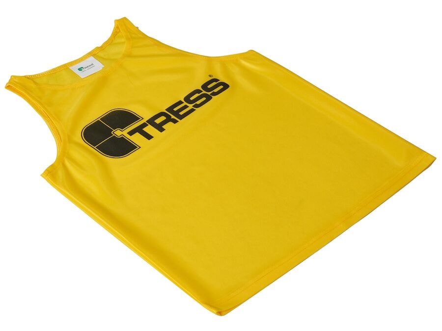 TRESS leikmannavesti fyrir íþróttir og frjálsar íþróttir, úr léttu og andar vel pólýester sem er sterkt og dregur ekki í sig vatn. Þessi skyrta er í gulu og í stærð small, sem hentar venjulega börnum á aldrinum 3 til 8 ára. • Þornar einstaklega hratt þar sem hún dregur ekki í sig vatn • Úr léttu og endingargóðu pólýester • Góð passform • Þvoið við 30 gráður • Fáanlegt í mörgum litum og stærðum • Verðið er á stykkið. • Einnig kallað skyrtuvesti, merkjavesti og liðsbolir